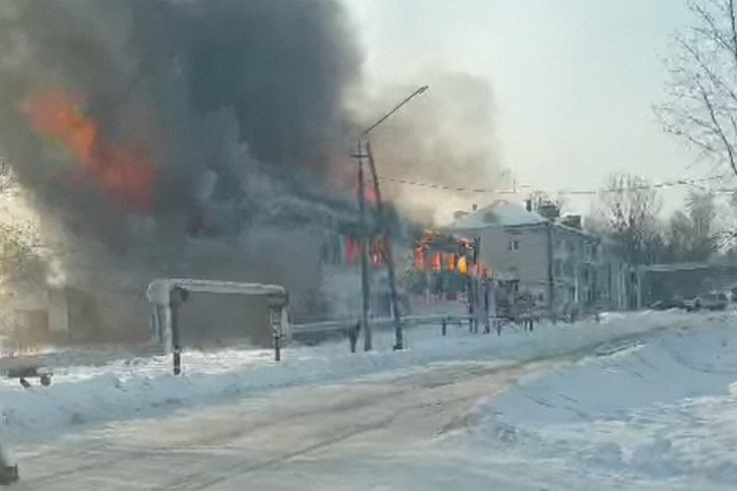 В поселке Хор Хабаровского края здание торгового комплекса горит на площади 480 кв. м. Об этом сообщается в Telegram-канале ГУ МЧС по региону.