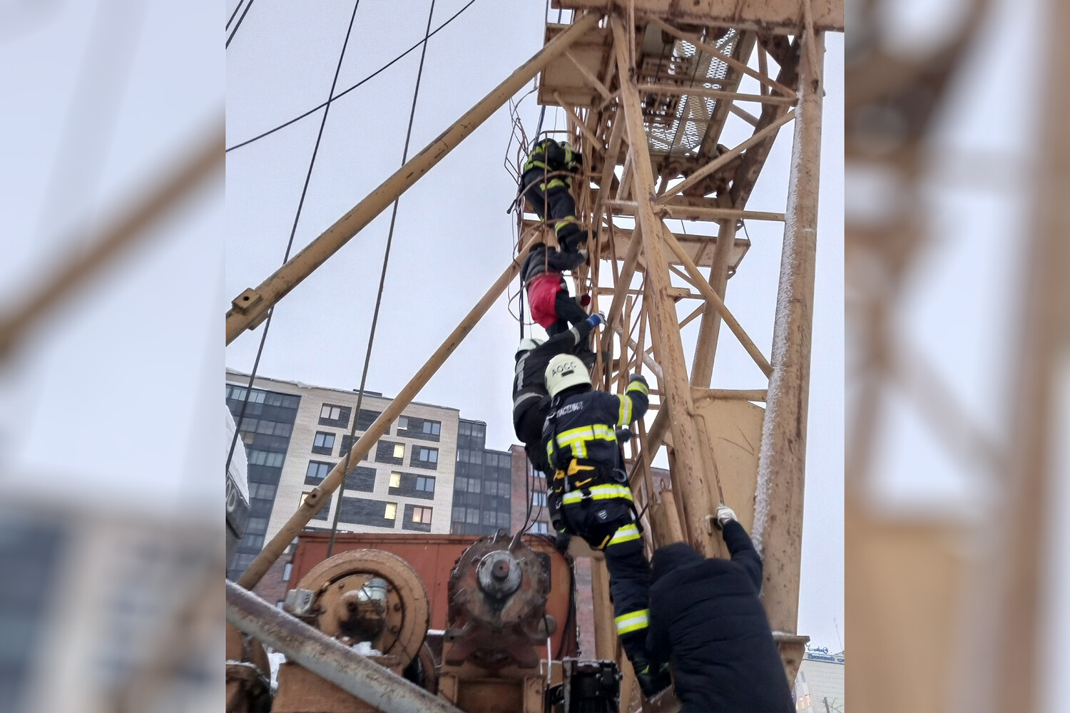 «Спасатель и дежурный медик из состава поисково-спасательной группы поднялись в кабину крана. Фельдшер АОСС осмотрел мужчину», – сообщается в публикации.
