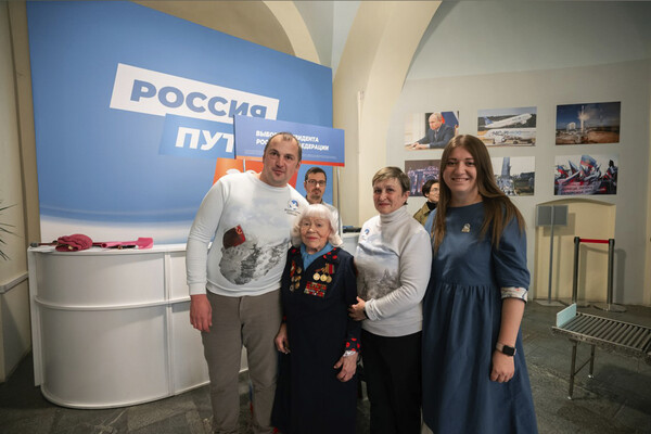 Участница Великой Отечественной войны Антонина Белозерова посетила штаб кандидата в президенты Владимира Путина и оставила свой голос в его поддержку. Об этом сообщается в Telegram-канале «Волонтеров победы».