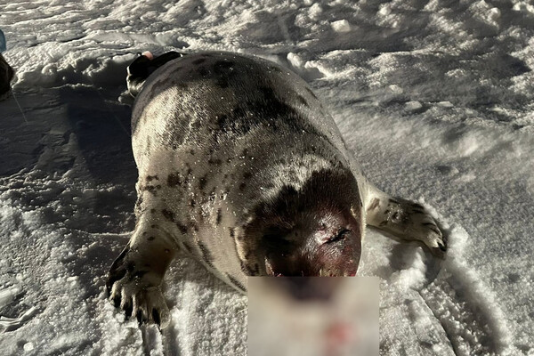 В Мурманской области на автодороге нашли окровавленного тюленя. Об этом сообщает организация по защите животных «Джульбарс».
