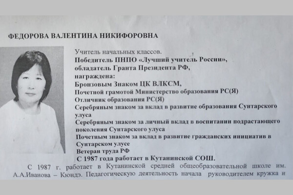 Дочь погибшей Федоровой рассказала изданию SakhaDay, что ее мать была учительницей начальных классов в местной школе. По ее словам, Федорова была победителем конкурса «Лучший учитель России» и очень любила свою работу.