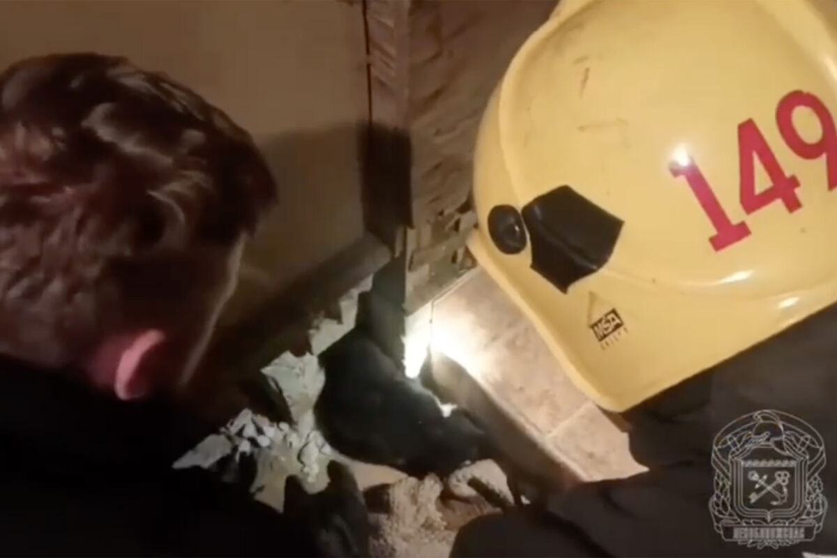 Жалобные крики кота услышала жительница деревни Суоранда, животное застряло в кирпичной кладке дома. Женщина пыталась сама спасти кота, но не смогла и вызывала спасателей.