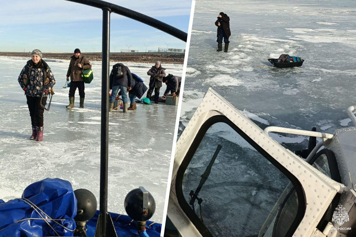 Спасатели на катере на воздушной подушке добрались до терпящих бедствие любителей подледного лова и доставили людей на берег. Медицинская помощь рыбакам не потребовалась.