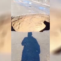 «Огромная яма на дороге образовалась буквально на глазах очевидцев», — говорится в публикации.