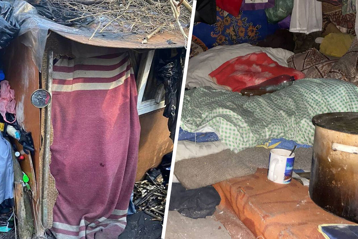 Сообщается, что семья готовила пищу на костре, а санитарно-гигиенические процедуры проводила в тазу. На кадрах, предоставленных омбудсменом, видно, что сам шалаш небольшого размера и снабжен самодельной дымовой трубой, а кровать внутри сделана из кучи матрасов и тряпок.