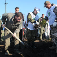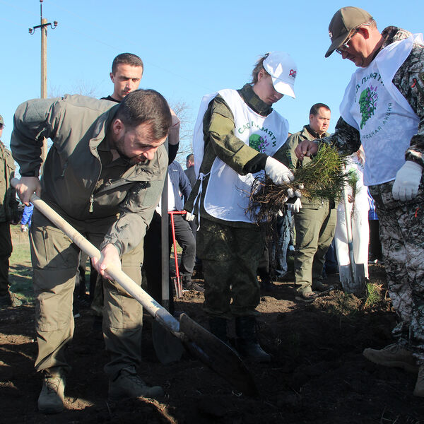 Центральное мероприятие прошло в Мангушском районе — на площади 4,5 га было высажено 20 тысяч сеянцев сосны обыкновенной, выращенных в лесных питомниках Курской области. В акции приняли участие в том числе глава ДНР Денис Пушилин, зампредседателя правительства — министр природных ресурсов Курской области Константин Поляков.