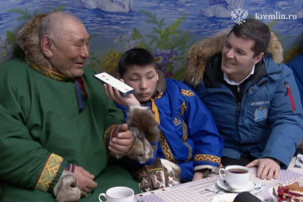 Президент России Владимир Путин по телефону поздравил с 50-летием семейной жизни ямальского оленевода Енксю Пяка. Путин, как и обещал, позвонил из Кремля, где проводил встречу с президентом Белоруссии Александром Лукашенко и вернувшимися с МКС космонавтами, сообщает ТАСС.