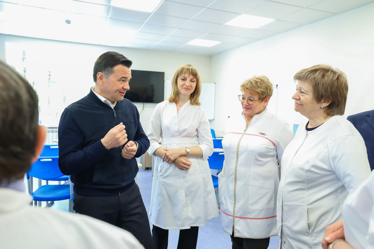 Глава Подмосковья провел встречу со студентами и педагогами, осмотрел обновленный хирургический кабинет, а также кабинеты сестринского дела и профессионального ухода.