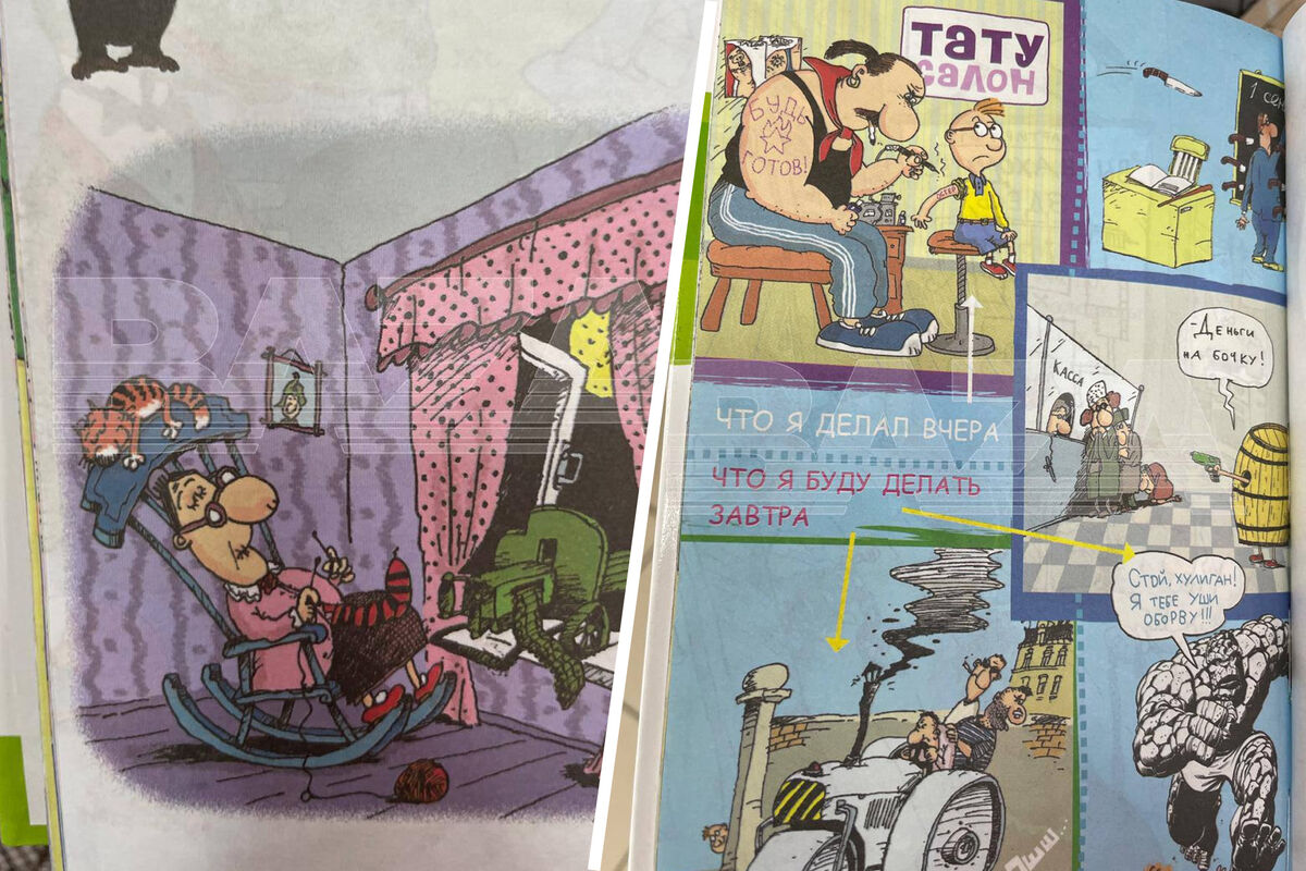 Открыв книгу, как пишет Baza, она увидела в ней рисунки с виселицами и самолетами, которые «летят на Запад». После этого возмущенная женщина отправилась в прокуратуру, где решили выдать предписание владельцу магазина изъять книгу и уничтожить ее.