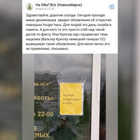 В мэрии Новосибирска позднее сообщили, что объявление было наклеено со стороны улицы, а владельцев заведения «кто-то подставил».