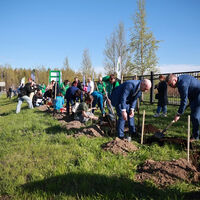 К торжественной высадке присоединились участники форума-фестиваля, представители власти и бизнеса, а также бессменные друзья акции – «Волонтеры Победы» и участники Всероссийского сообщества детей и молодежи «Движение Первых».