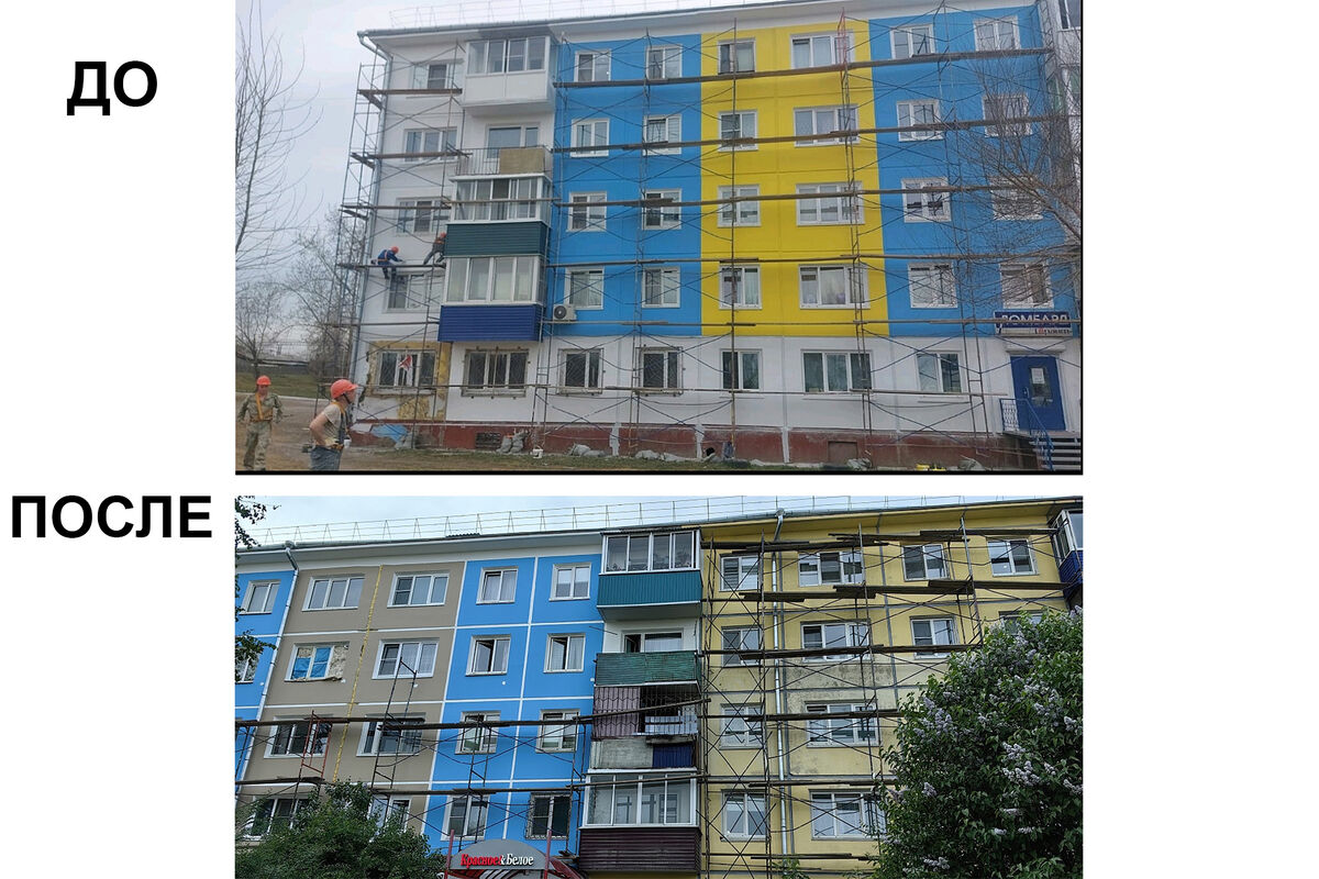 В городе Усолье-Сибирское Иркутской области желто-голубой фасад дома перекрасили после поступивших от горожан претензий. Об этом сообщает «Подъем» со ссылкой на пресс-службу городской мэрии.
