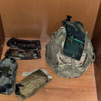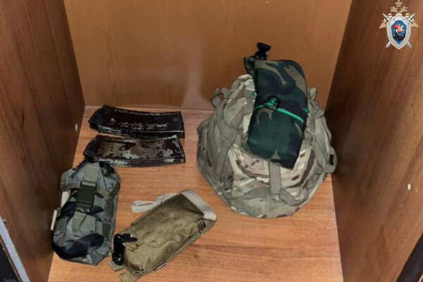 На кадрах, приложенных ведомством, видна сложенная военная форма, рюкзак защитного цвета, обернутый влагозащитным чехлом, а также армейские пристяжные сумки.