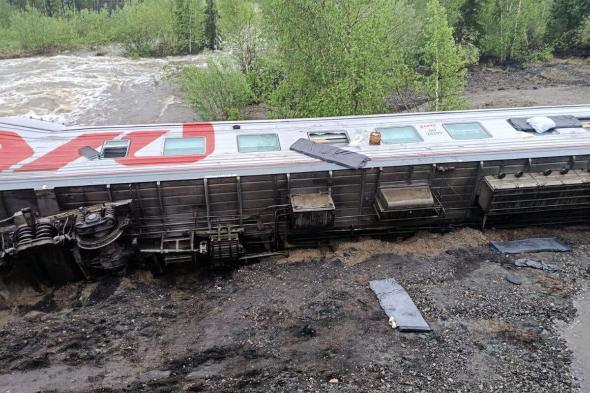 Вечером 26 июня стало известно, что около станции Инта в Коми сошел с рельсов пассажирский поезд Воркута-Новороссийск. В составе было 14 вагонов, 9 из них перевернулись.