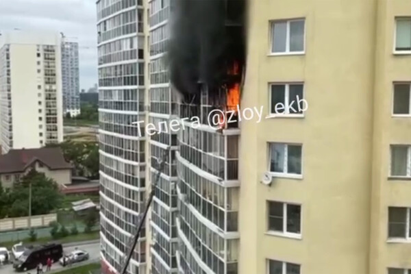 МЧС: два балкона загорелись в 16-этажном жилом доме в Екатеринбурге