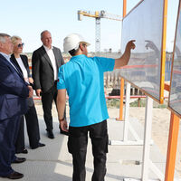 В рамках визита глава региона совместно со своим советником Викторией Абрамченко ознакомился с ходом строительства основных сооружений второго этапа: водосбросной плотины, нижней головы судоходного шлюза, головного регулятора рыбоходно-нерестового канала.