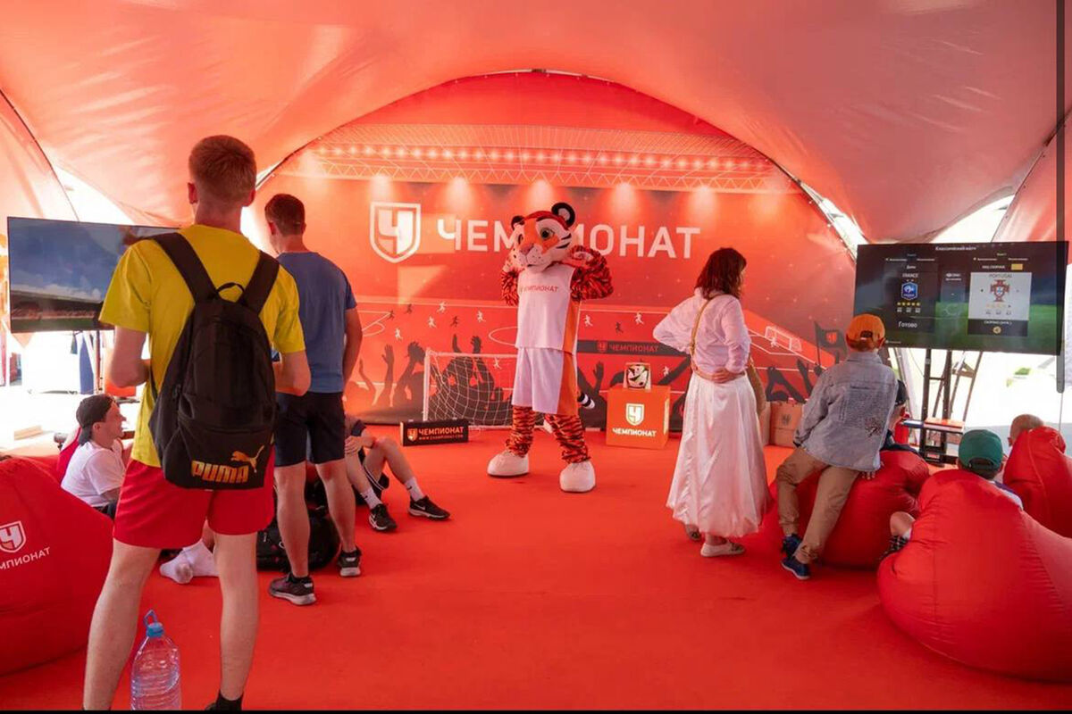 Портал расположился совсем недалеко от главной сцены. В локации «Чемпионата» для посетителей была организована игровая зона с PS5, кикером и аэрохоккеем, а также лаунж-зона с мягкими пуфами и столиками с зарядными станциями. Кроме того, сотрудники портала разыгрывали уникальные сувениры и призы, например, мяч Евро-2024.