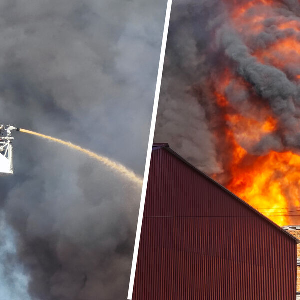 Как сообщает МЧС, в здании частично обрушилась кровля. Внутри склада находятся 30 газовых баллонов, из них 10 успели вынести пожарные.
