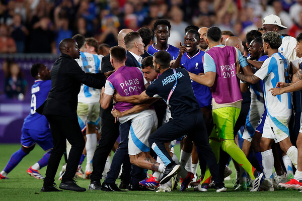 Футболисты сборных Аргентины и Франции устроили потасовку после матча на ОИ