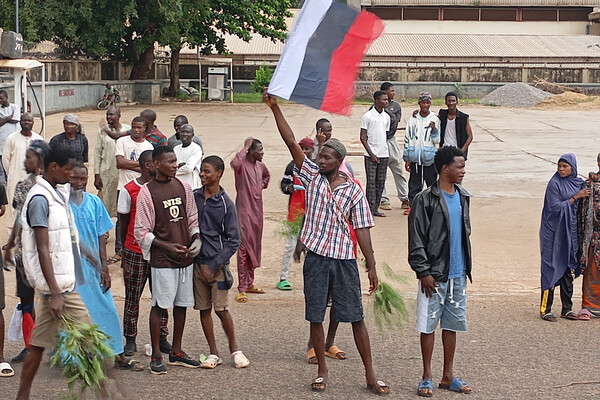 Протестующие в северных штатах Борно, Кадуна, Кано и Кацина размахивали сотнями российских флагов, а некоторые призывали к военному захвату власти. Один из участников этих акций заявил Reuters, что Россия, в отличие от других стран, всегда поддерживала развитие африканских стран. Начальник штаба обороны Нигерии генерал Кристофер Муса назвал размахивание флагом РФ во время антиправительственных протестов «изменническим преступлением». Он добавил, что против задержанных будут применены «серьезные меры».