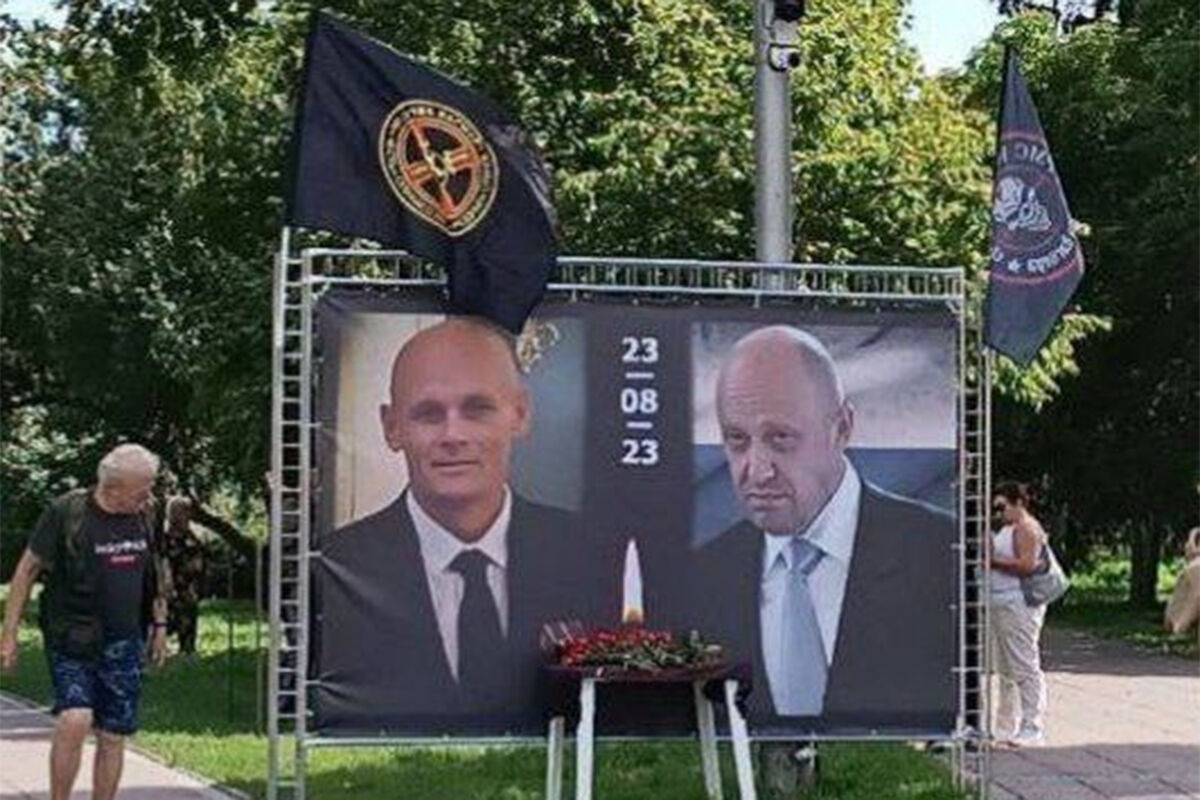 Мемориал появился в Новосибирске 23 августа — в годовщину крушения самолета с Пригожиным и Уткиным на борту. Полотно с фотографиями руководителей ЧВК «Вагнер» повесили в Нарымском сквере, рядом были возложены цветы.