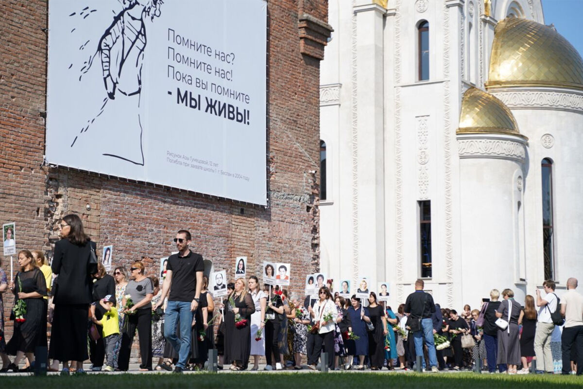 1 сентября, в 9:15 во дворе учебного заведения раздался школьный звонок. В этот день 20 лет назад террористы захватили школу. Бывшие заложники первыми вошли в разрушенный спортзал. Они держали в руках портреты погибших детей и взрослых.