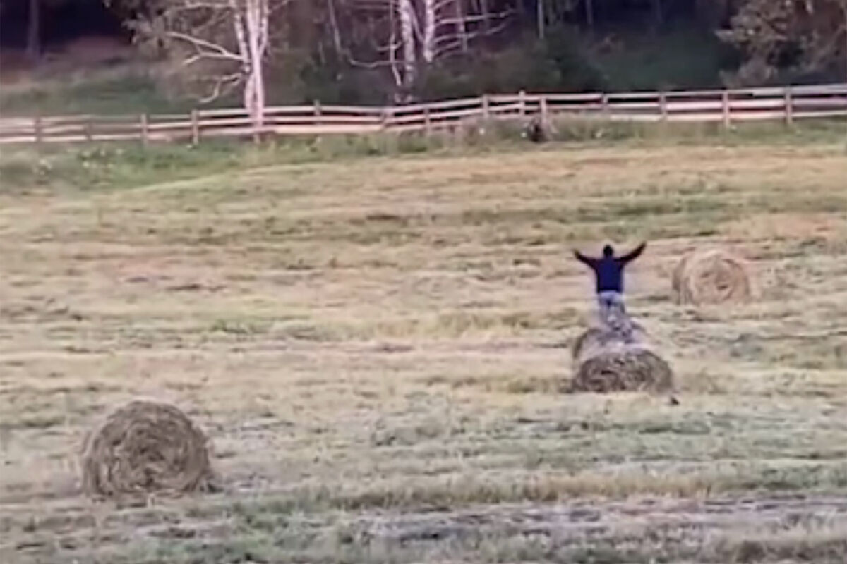 В Белорецке местный житель напугал медведя необычным способом. Мужчина заметил хищника в поле. Чтобы казаться больше и прогнать зверя, ему пришлось взобраться на стог сена и начать размахивать руками.