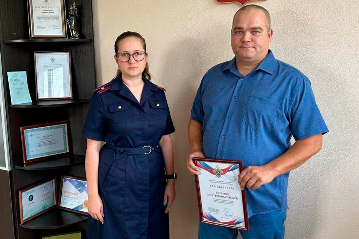 Руководитель Марксовского межрайонного следственного отдела СК Анастасия Тюрина вручила мужчинам благодарности. В ведомстве уточнили, что инцидент произошел в Марксовском районе в лесу около села Ястребовка в мае 2024 года. Беляковы проходили мимо места, где злоумышленник пытался надругаться над ребенком. Они смогли задержать его и вызвали полицию.