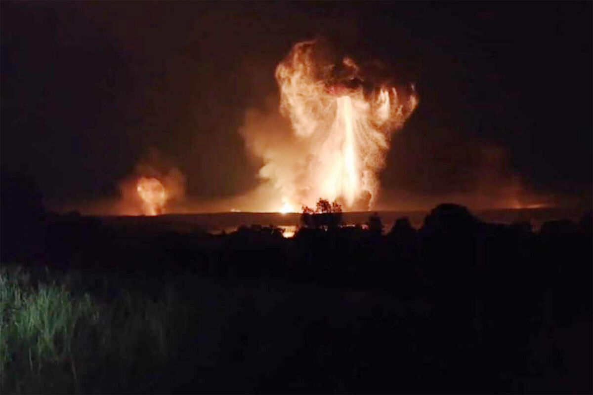 Эвакуация проводится с территории, где работают силы противовоздушной обороны (ПВО) и локализуется пожар.