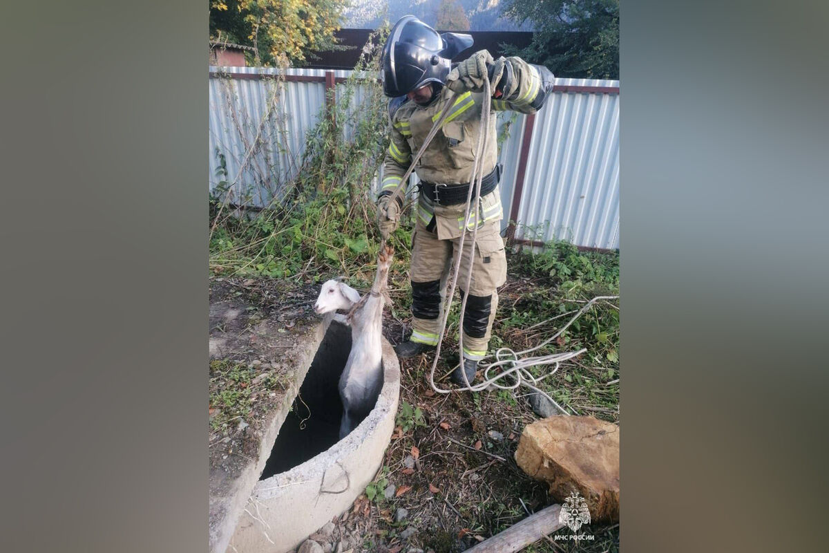 Спасатели достали провалившегося в трехметровую яму козленка в поселке Архыз в Карачаево-Черкессии. Об этом сообщило МЧС России в Telegram-канале.