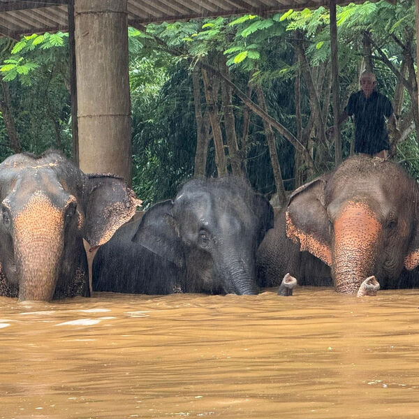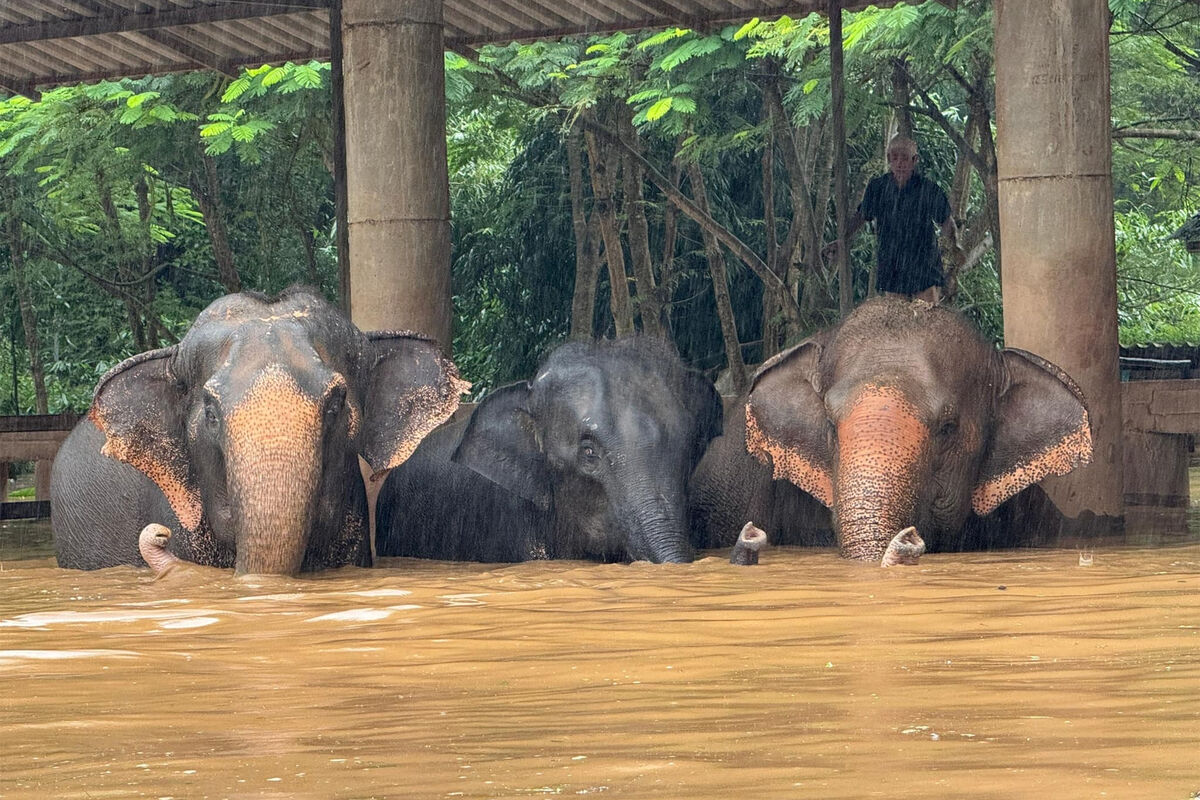 Заповедник со слонами затопило в Таиланде после тайфуна