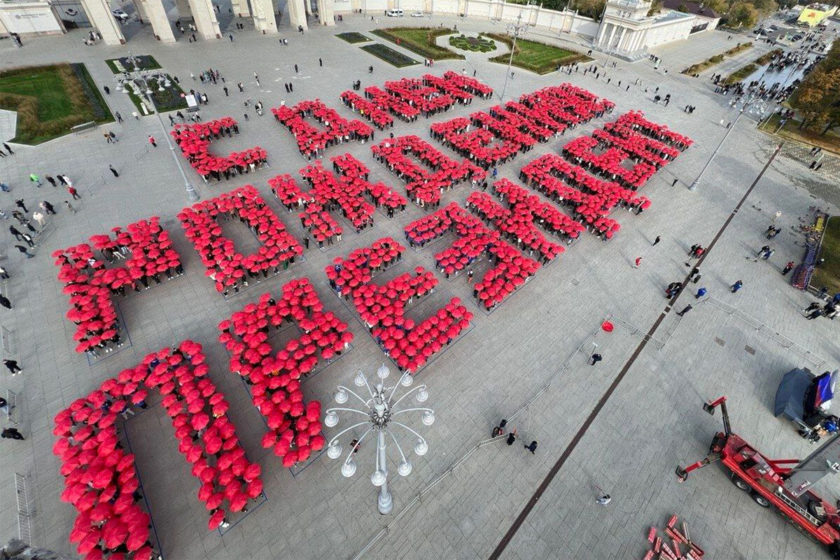 В Москве в мероприятии приняли участие более 5 тысяч активистов. Они вышли на ВДНХ с плакатами, на которых были описаны знаковые достижения России.