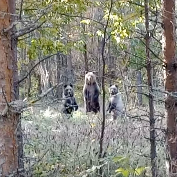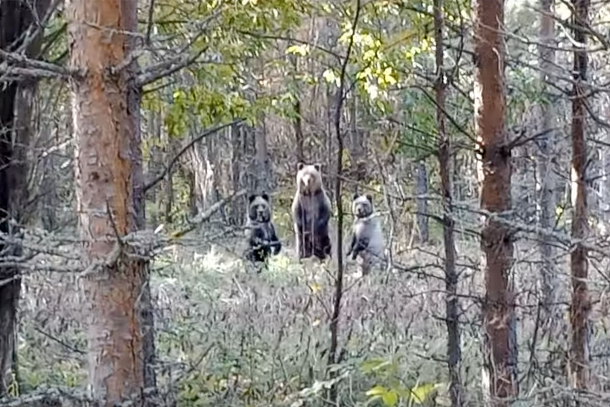 Заметив госинспекторов, медведи встали на задние лапы. На кадрах ролика, опубликованного в сети, инспектору удалось прогнать зверей одной фразой.
