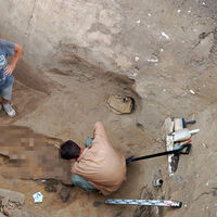 «Погребение было обнаружено на самом дне раскопа. Оно принадлежало мужчине, лежащему вытянуто на спине непосредственно на скале. У плеча погребенного был размещен пояс», — рассказали в музее.