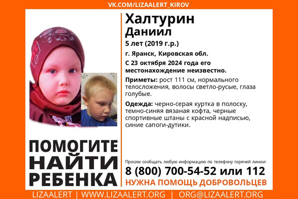 В день, когда ребенок пропал, на нем была черно-серая куртка с белыми вставками, коричневая шапка и синие сапоги.