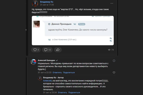 «Ну, правда, это точно еще не «жертва ЕГЭ»... Но, черт возьми, откуда они такие берутся???» — написал он.