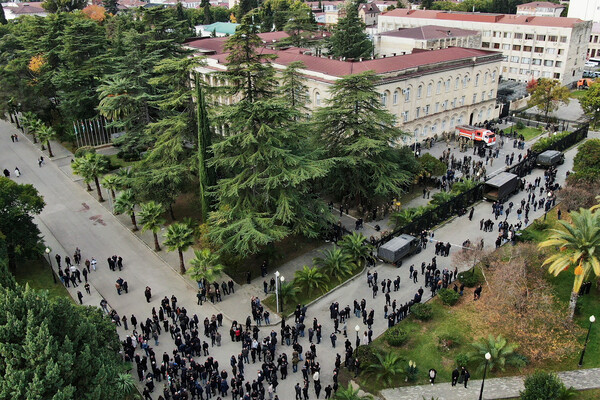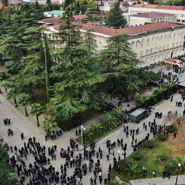Глава МВД Абхазии Роберт Киут и руководитель службы госбезопасности Дмитрий Кучуберия провели переговоры с протестующими у здания республиканского парламента. Об этом сообщил Telegram-канал информационного центра абхазского президента.