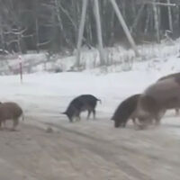 По словам автора записи, животных он заметил на трассе «Кемерово — Яшкино». На кадрах видно, как целое стадо — около 14 особей — ходят вдоль обочины и неторопливо пересекают дорогу, не опасаясь движущегося транспорта.