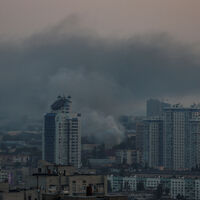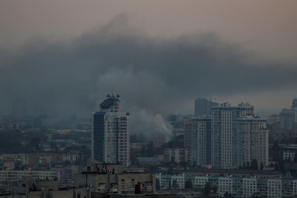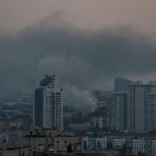 Ранее появились кадры задымленных улиц у ж/д вокзала Киева.