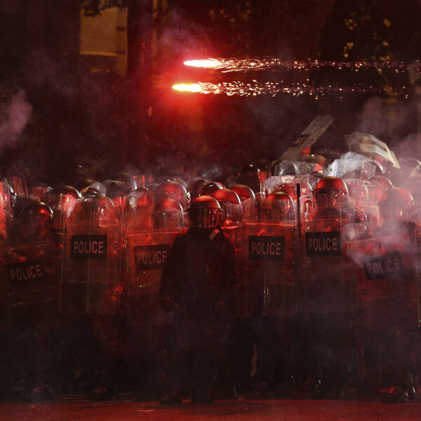 По информации агентства, решение о начале задержаний было принято после того, как протестующие несколько раз выстрелили пиротехникой в стражей порядка у здания грузинского парламента.