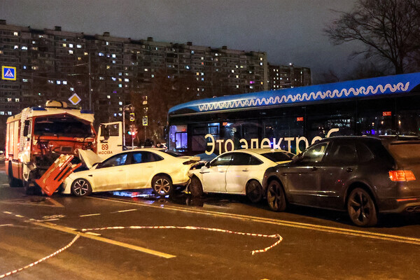 В ночь на понедельник, 23 декабря, в Москве произошло массовое ДТП с участием пожарного автомобиля, попавшее на видео. Момент аварии сняли камерами наблюдения.