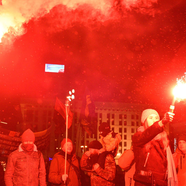 В городе Львове на западе Украины сторонники националиста Степана Бандеры провели факельное шествие. Об этом сообщается в Telegram-канале издания «Страна.ua».