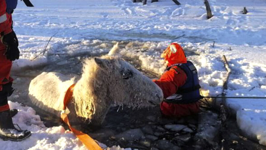В российском регионе спасли лошадь, провалившуюся под лед на водохранилище