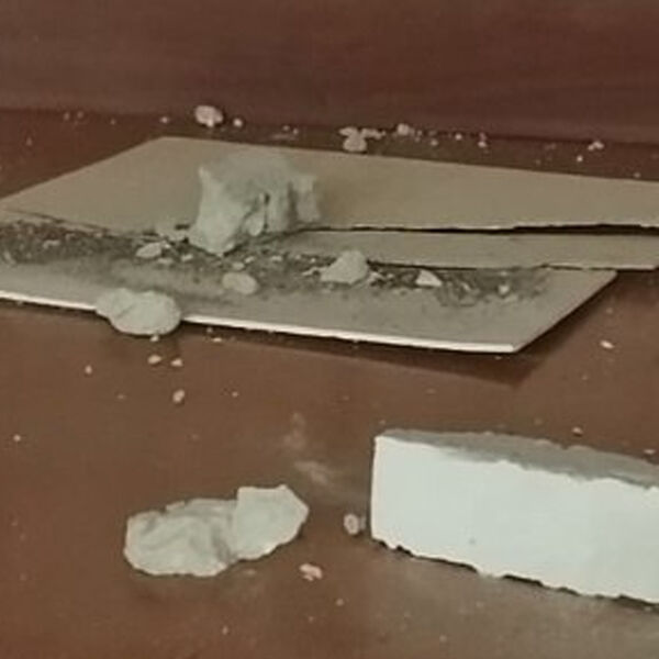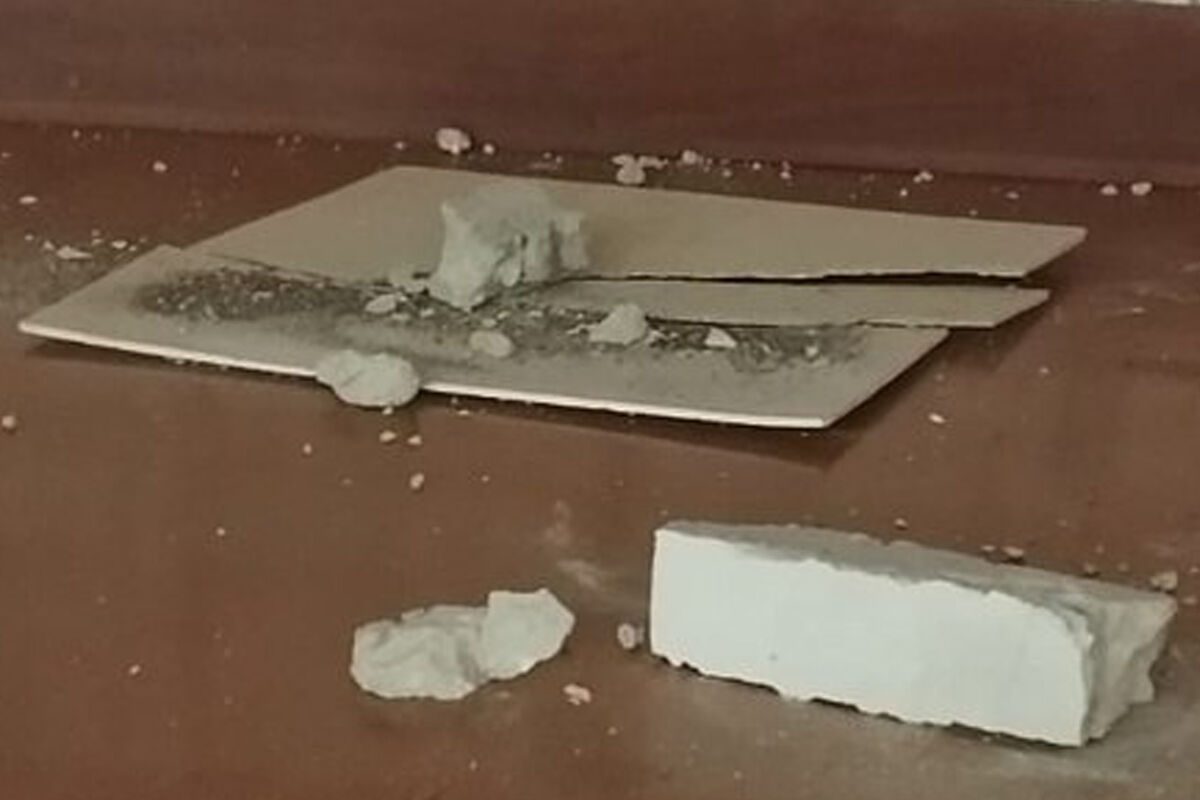 Инцидент произошел в школе №3. По словам одной из родительниц, кусок бетона с потолка упал на сцену актового зала, когда там проходила репетиция.