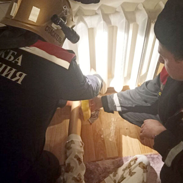 Спасатели, прибывшие на вызов, при помощи нехитрых манипуляций за несколько минут вытащили ногу мальчика из ловушки.