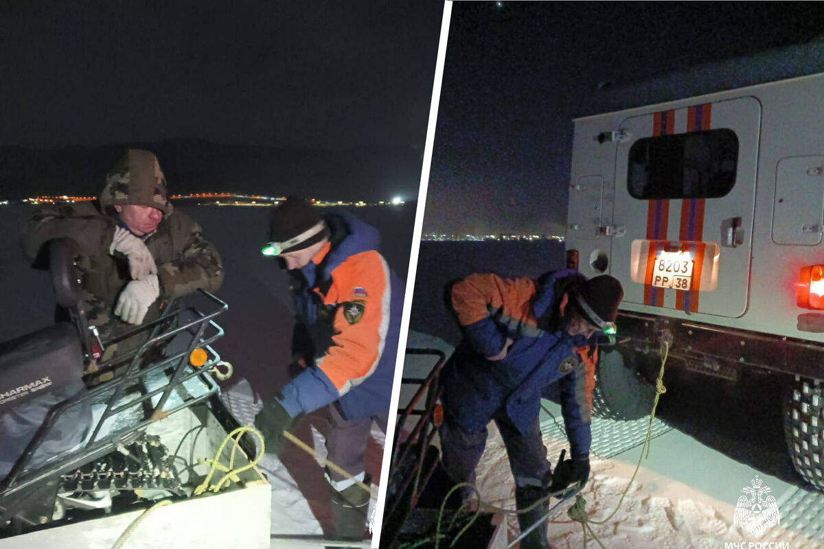 Мужчина застрял на сломавшемся снегоходе посреди Байкала