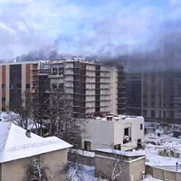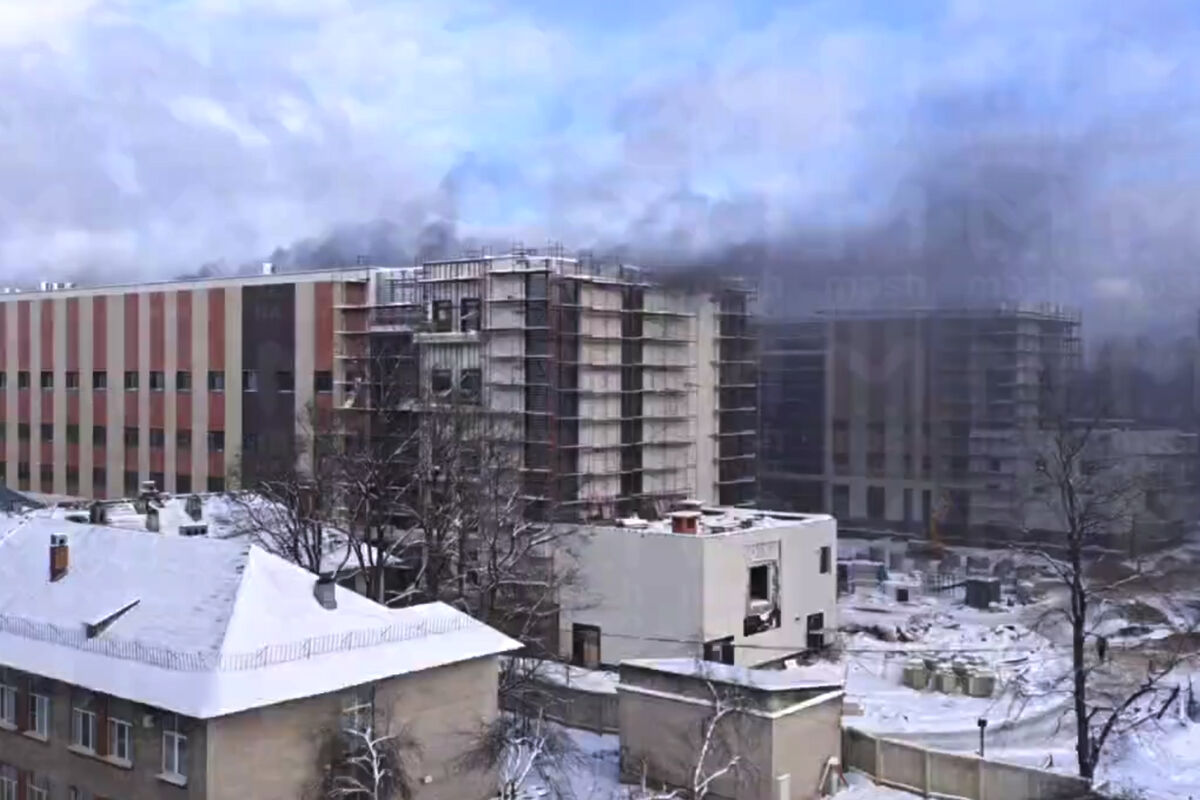 В Петербурге начался пожар в строящемся больничном корпусе на Авангардной улице. Видео с места инцидента опубликовал 78.ru.