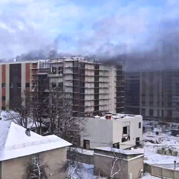 На кадрах видны густые клубы черного дыма, которые поднялись от горящего здания. По данным МЧС, огонь распространился на втором этаже на площади в 30 кв. м.