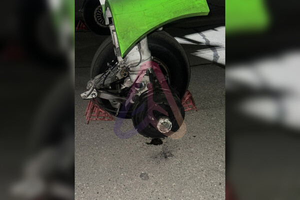 «При осмотре самолета обнаружено разрушение тормоза внешнего колеса на левой основной стойке шасси. Само колесо и пневматик в порядке», — говорится в сообщении.