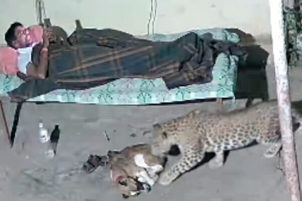 В Индии леопард напал на спящую на улице собаку, пока ее хозяин лежал рядом на кровати и смотрел что-то в телефоне. Инцидент зафиксировала расположенная во дворе камера. Позже видео опубликовало издание Need To Know.